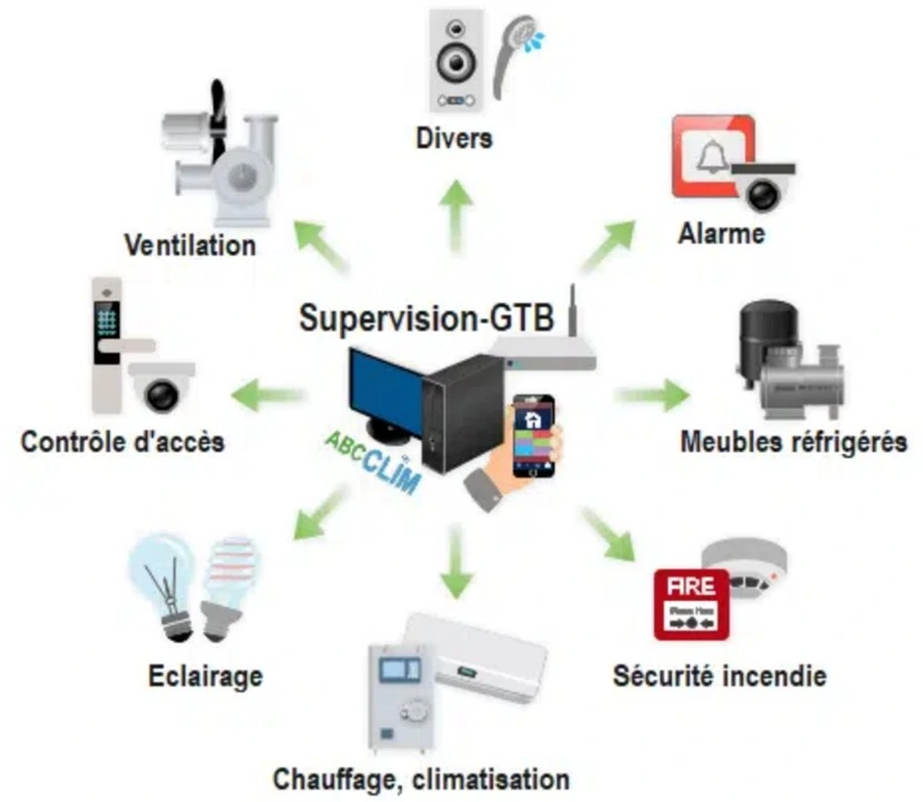 La GTB pilote les équipements techniques : elle collecte des données grâce à des capteurs, des détecteurs et des compteurs, les analyse puis les ajuste et les optimise en temps réel grâce à des commandes électriques.